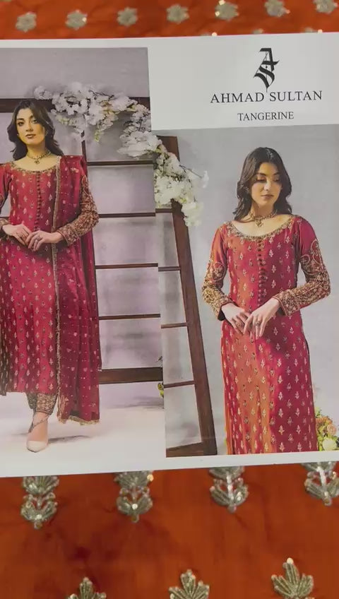 Ahmad Sultan | 3 Piece Embroidered Cotton Silk | Tangerine