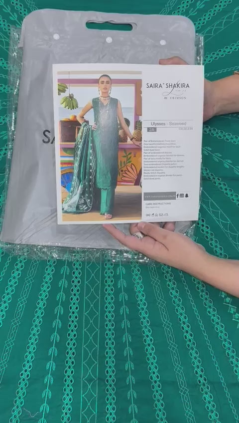 Crimson | Unstitched Embroidered Lawn Saira Shakira Pret | Ulysses Seaweed- Green 2A