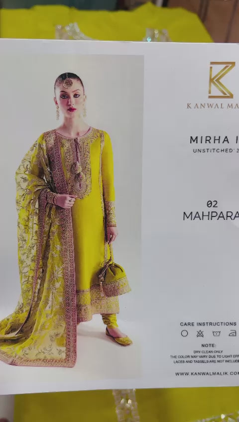 Kanwal Malik | 3 Piece Unstitched Embroidered Korean Silk | Mahpara