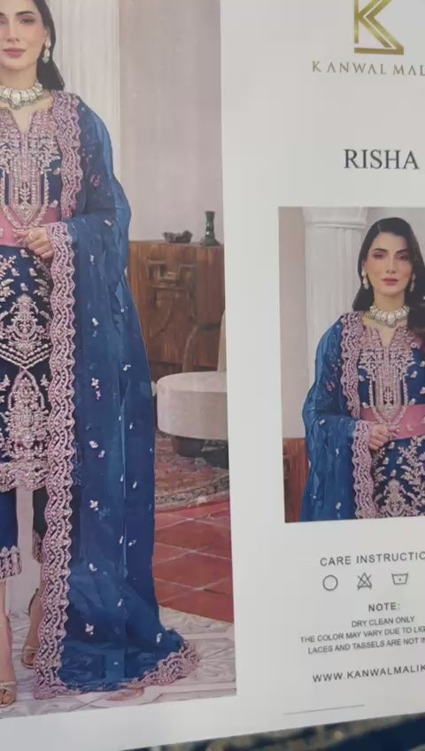 Kanwal Malik | 3 Piece Unstitched Embroidered Organza | Risha