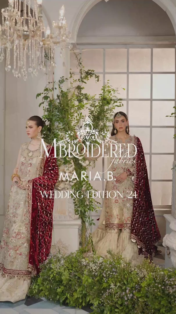 Maria B. | 3 Piece Unstitched Embroidered Organza Suit | BD-2905 - Ivory and Maroon
