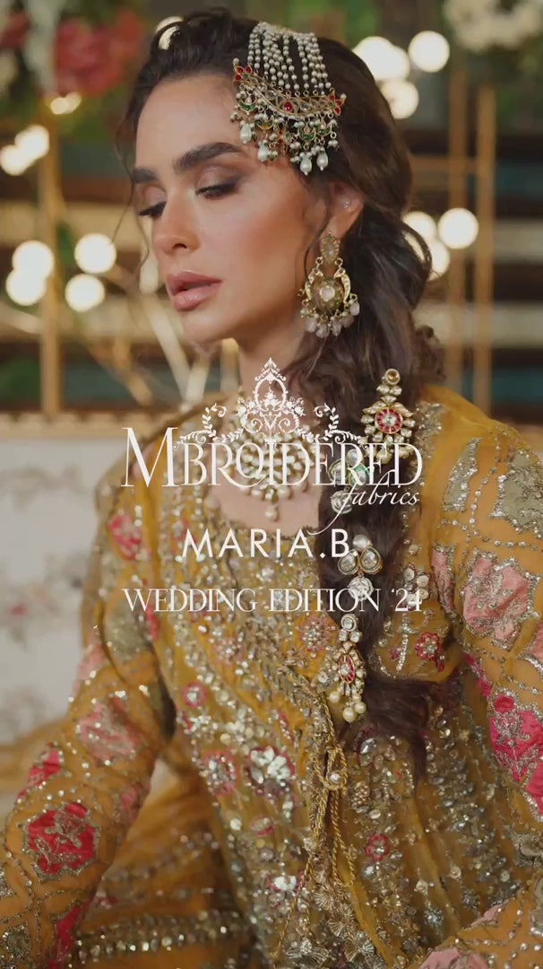 Maria B. | 3 Piece Unstitched Embroidered Organza Suit | BD-2907 - Mustard
