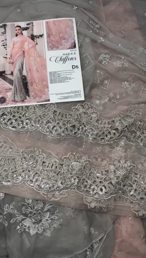 Maria B. | Unstitched Chiffon Embroidered Saree Peach And Grey | MPC-23-105